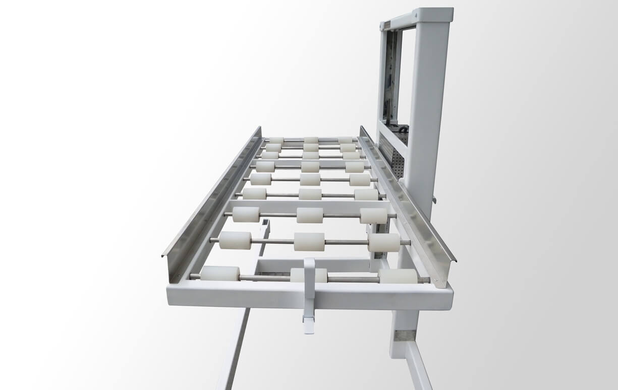 - Sistema de rodillos: el interior de cada compartimiento posee un conjunto de rodillos de polipropileno sobre el que se colocan bandejas realizadas en acero inoxidable que se pueden extraer totalmente deslizando fácilmente sobre ellos. Se complementa con el carro elevador.