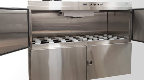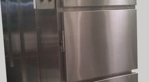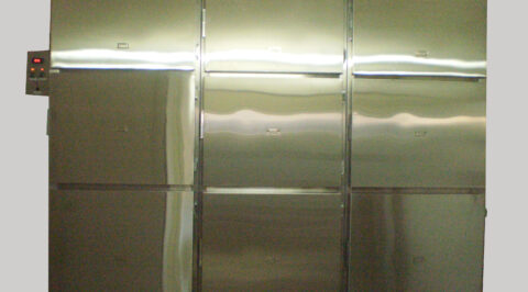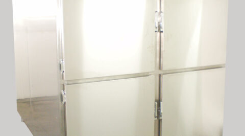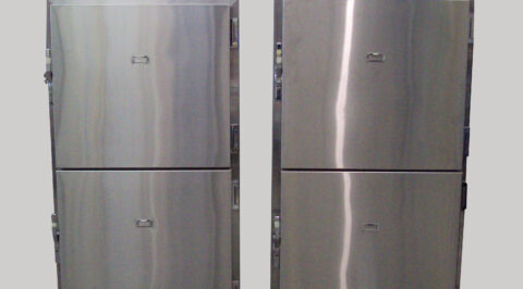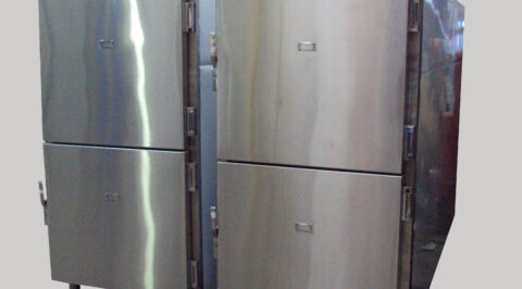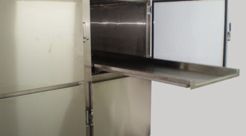 Cámaras mortuorias para conservación o congelación – De apertura frontal o lateral – Totalmente realizadas en acero inoxidable AISI 304 – Capacidades estándar: 1, 2, 3 y 4 cuerpos – Capacidad a pedido: sin limitación – Cuentan con la unidad condensadora completa incorporada o remota, con equipos de primeras marcas – Regulación de temperatura a través de instrumental digital de arranque, parada y descongelamiento – Marco de puerta calefaccionado para bajas T° – Aislación térmica realizada en poliuretano expandido – Iluminación interior – Tablero de comando – Alarma de control de T°.