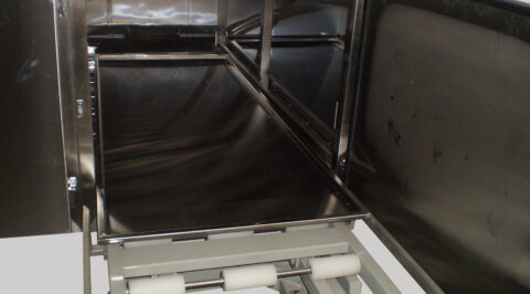 - De guías telescópicas: cuenta con guías telescópicas que permiten extraer las bandejas casi en su totalidad fuera del gabinete. Las bandejas están realizadas en acero inoxidable AISI 304 con espesores para garantizar la resistencia.